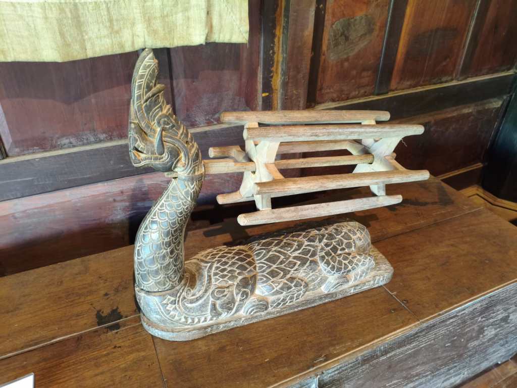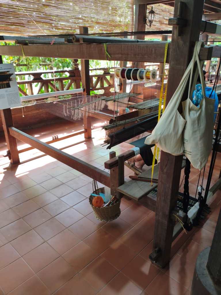 The upper floor of the main building was a collection of tools, dress and gowns in Laos in different time periods. Unsurprisingly, the room adopted the modest design from the entrance to the exit. Visitors couldn’t find any air conditioner or electronic monitor in here. Although there were no fancy technologies presenting the history of the dress or textile in the past, its design did not affect our understanding about Laos textile and dress.