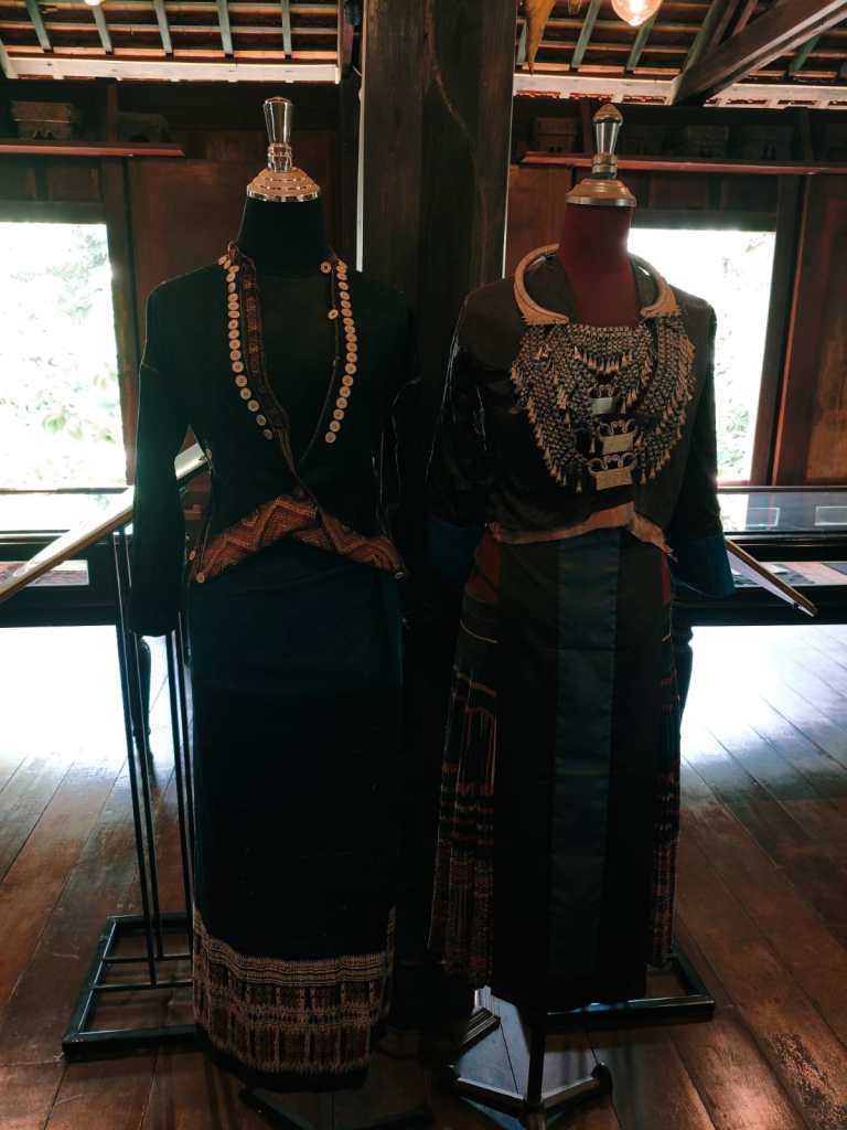 To be honest, I’m not a fashion enthusiast, so I wasn’t familiar with the patterns and styles of this vintage design. However, most of them were created for special events and festivals. For example, some dresses could only be worn on a specific day of the year, which meant women couldn’t wear them on ordinary days. I was surprised by the similarities between Chinese and Laotian cultures. Although they are quite different from each other, rituals still hold an important position in their lives. But what I didn’t expect was the function of the dresses. Apart from being worn for celebrations, they also served as the “uniform” of witch doctors during the 20th century.