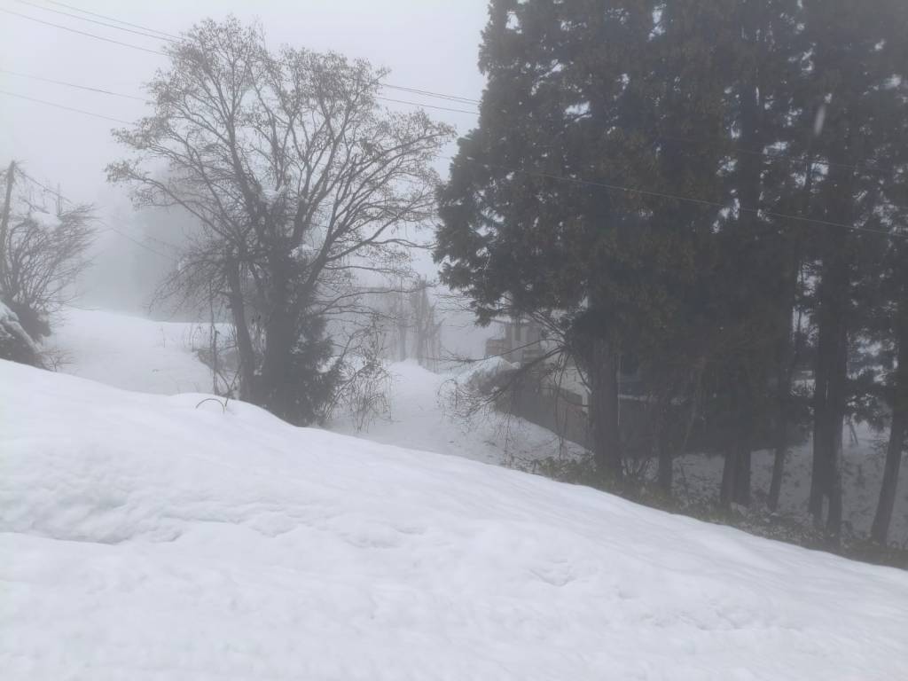 As I got higher, the wind became stronger. My vision began to become clear, as the fog was getting thinner in the air. Worst of all, a slope in front of me was fully covered by snow. It was impossible to go forward without a shovel.